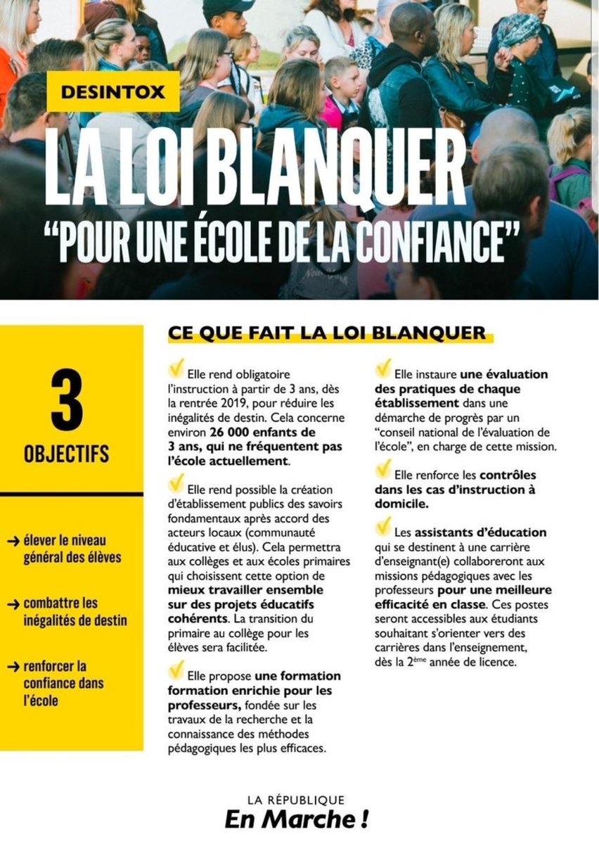 Parmi les principales mesures : En abaissant à 3 ans l'âge de l'entrée à l'école, on agit sur l'amont pour la première fois. Marlène schiappa et l'école maternelle obligatoire dès 3 ans. L'école obligatoire dès 3 ans remet également en lumière la question des emplois aidés. La scolarité deviendra obligatoire dès l'âge de 3 ans à partir de la rentrée 2019: