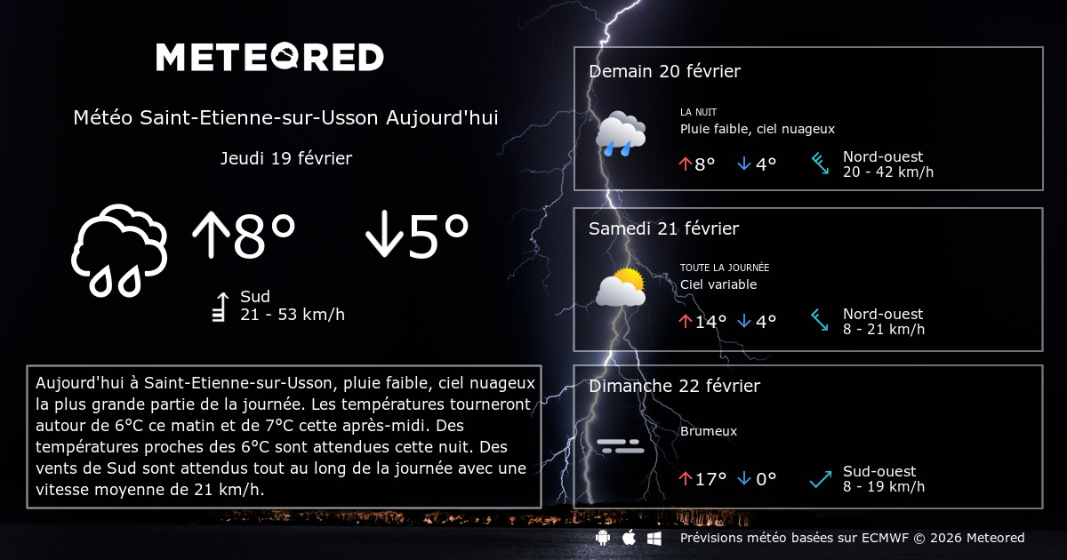 Météo saint etienne prévisions météorologiques à jours. Ces prévisions météo détaillées sont présentées par tranches de 3 heures. Previsioni del tempo per saint etienne (francia), affidabili e sempre aggiornate. Prévisions météo saint etienne pour ces 15 prochains jours. Previsions meteo a 10 jours pour la loire et les villes: