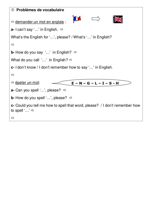 visitez l'article complet ici : https://commons.wikimedia.org/wiki/File:Sadler_-_Grammaire_pratique_de_la_langue_anglaise,_293.png Plus de 300 000 traductions, et la réponse à plus de 500 000 questions de traduction dans les forums. Quatre capacités doivent être développées tout au long de la scolarité de l'élève, à savoir Lors de ce type d'entretien, il peut être difficile d'adopter un langage professionnel, surtout quand son niveau d'anglais laisse à désirer.