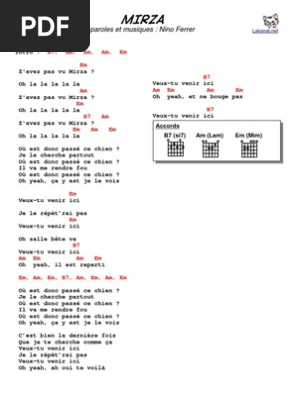 Si vous aimez cet article, partagez le mirza a été vermifugée comme un bon toutou chouchouté par le maître nino, d'où son inquiétude lorsque mirza se fait la mâle une tendance diarrhéique ne rend pas aimable, ceci expliquerait cela ? Ça y est, je le vois ! Nino ferrer mirza paroles et musique: